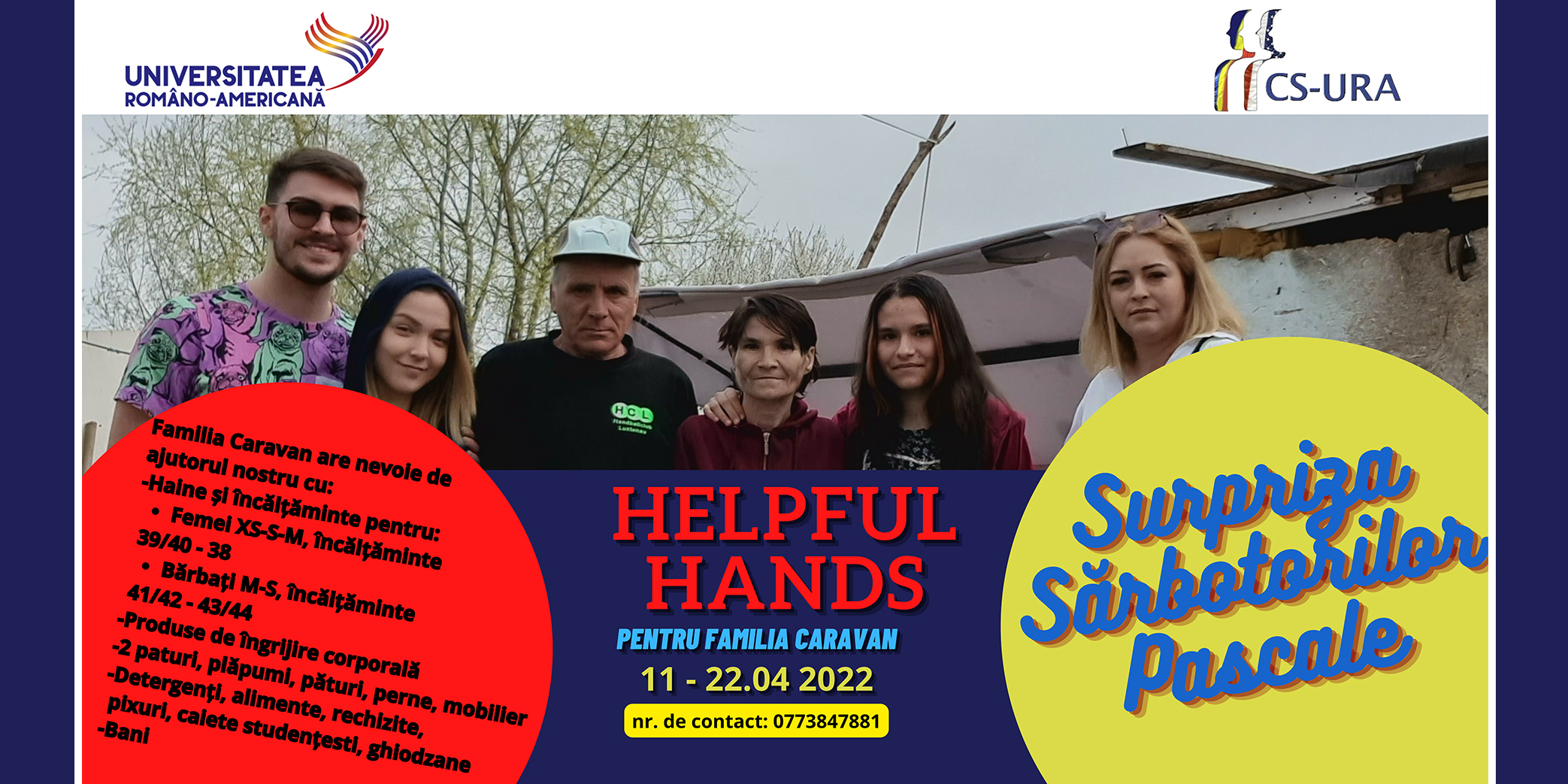 Înaintea Sărbătorilor Pascale, vă invităm să oferiți aripi visurilor familiei Caravan prin intermediul campaniei de caritate “Helpful Hands” desfășurată de CS-URA în perioada 11-22 Aprilie 2022.