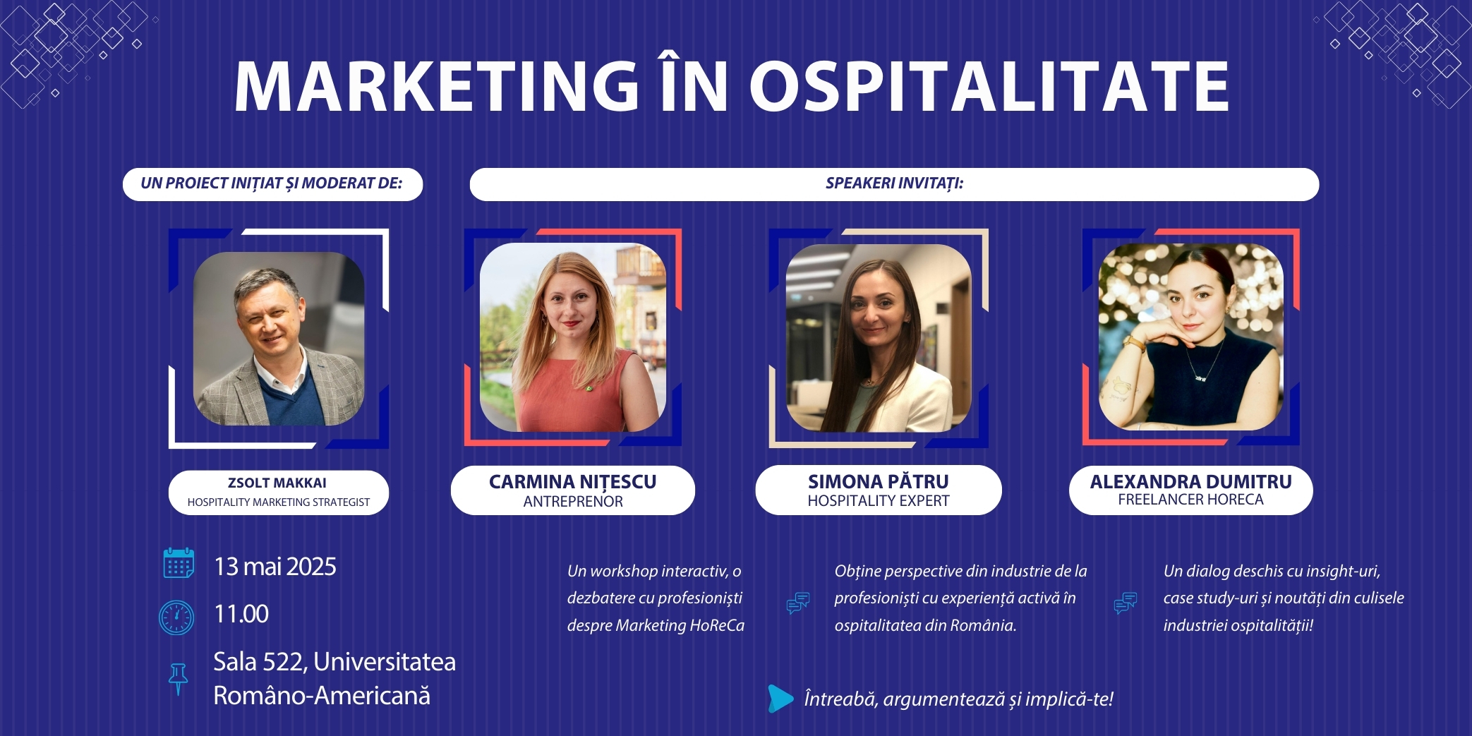 Întreabă, argumentează și implică-te! Nu rata ocazia de a face networking direct cu specialiști din marketing, afaceri și HoReCa, descoperă cum viitorul tău are ecou în această industrie! Înscrie-te aici.