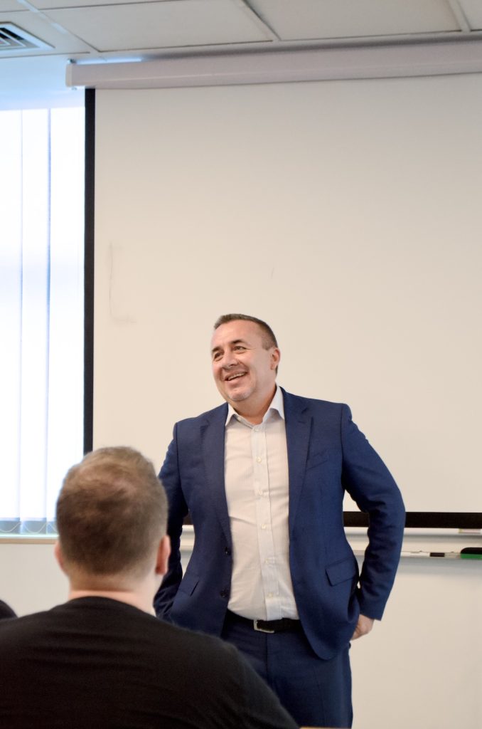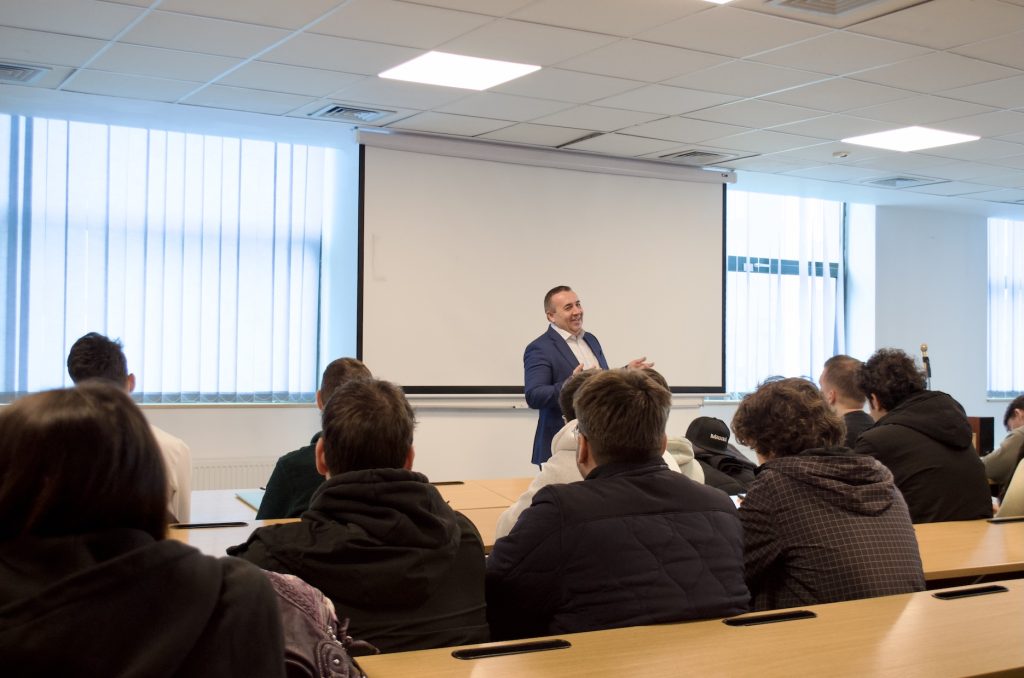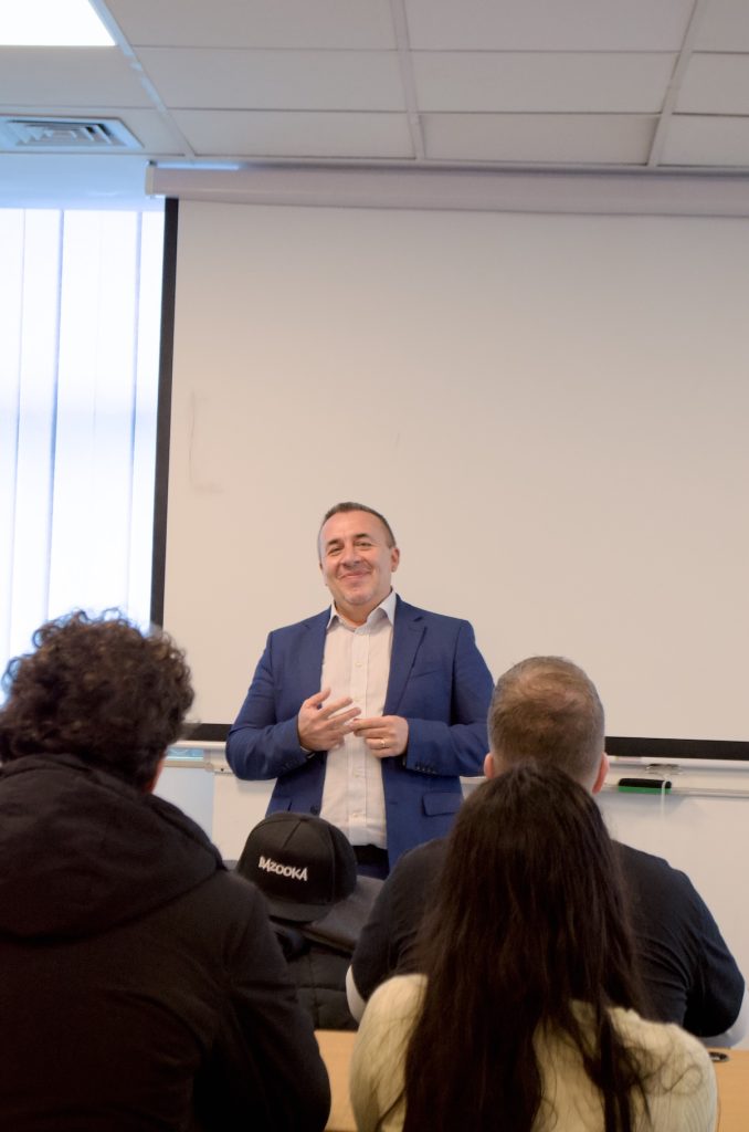 A graduate of the Faculty of Computer Science for Business Management, Florin Vasile spoke to students about self-confidence, professional ethics, and the courage to seize every opportunity. He emphasized the importance of continuous learning, perseverance, and a positive attitude at the beginning of one’s career: