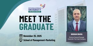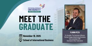 Vlad Stoicescu on Responsibility, Education, and Sustainability On November 10, students from the School of International Business at the Romanian-American University had the opportunity to