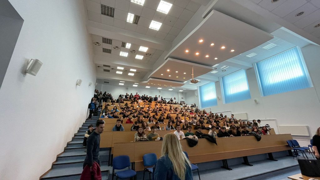 De Ziua Educației Financiare 180 de elevi de la Colegiul Economic Costin C. Kirițescu din București, alături de dna Director și 15 cadre didactice, au participat la cursul de Educație Financiară susținut la URA de domnul Conf.univ.dr. Mihai Sebea.